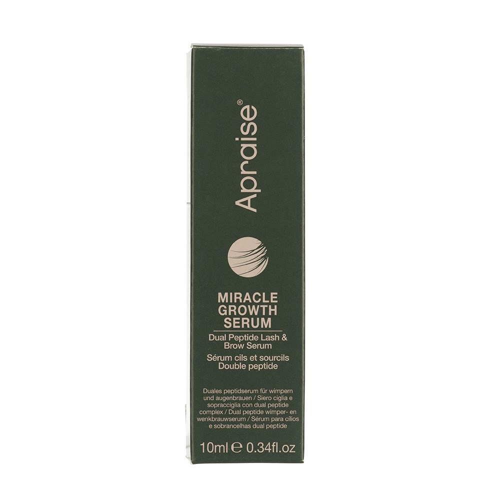 Transform the appearance of your lashes and brows in just 30 days. Apraise Miracle Growth Lash and Brow Serum is a deep conditioning serum powered by Dual Peptide Complex Technology to help stimulate keratin production. Infused with vitamin E and jojoba oil, this serum nourishes and strengthens short, brittle lashes and sparse brows. Support the natural lash and brow cycle for the appearance of fuller brows and longer lashes.