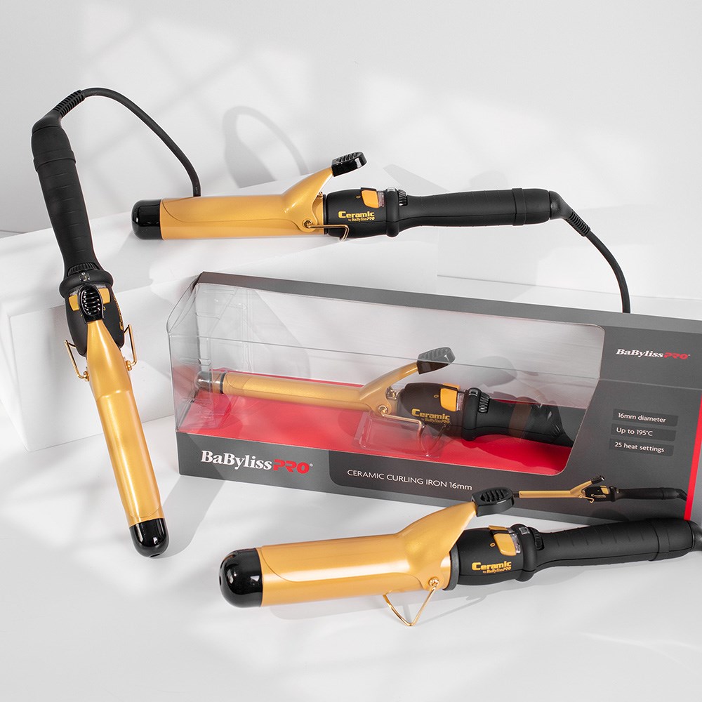 Smooth, shiny and frizz-free waves to covet. BaBylissPRO Ceramic Curling Iron 25mm creates beautiful, classic curls quickly. The ceramic barrel smooths the hair cuticle for a frizz-free finish, locking in style all day long. Fast heat up to 210°C and 25 heat settings to adapt to all hair types and textures. Safety cool tip creates added control while styling.