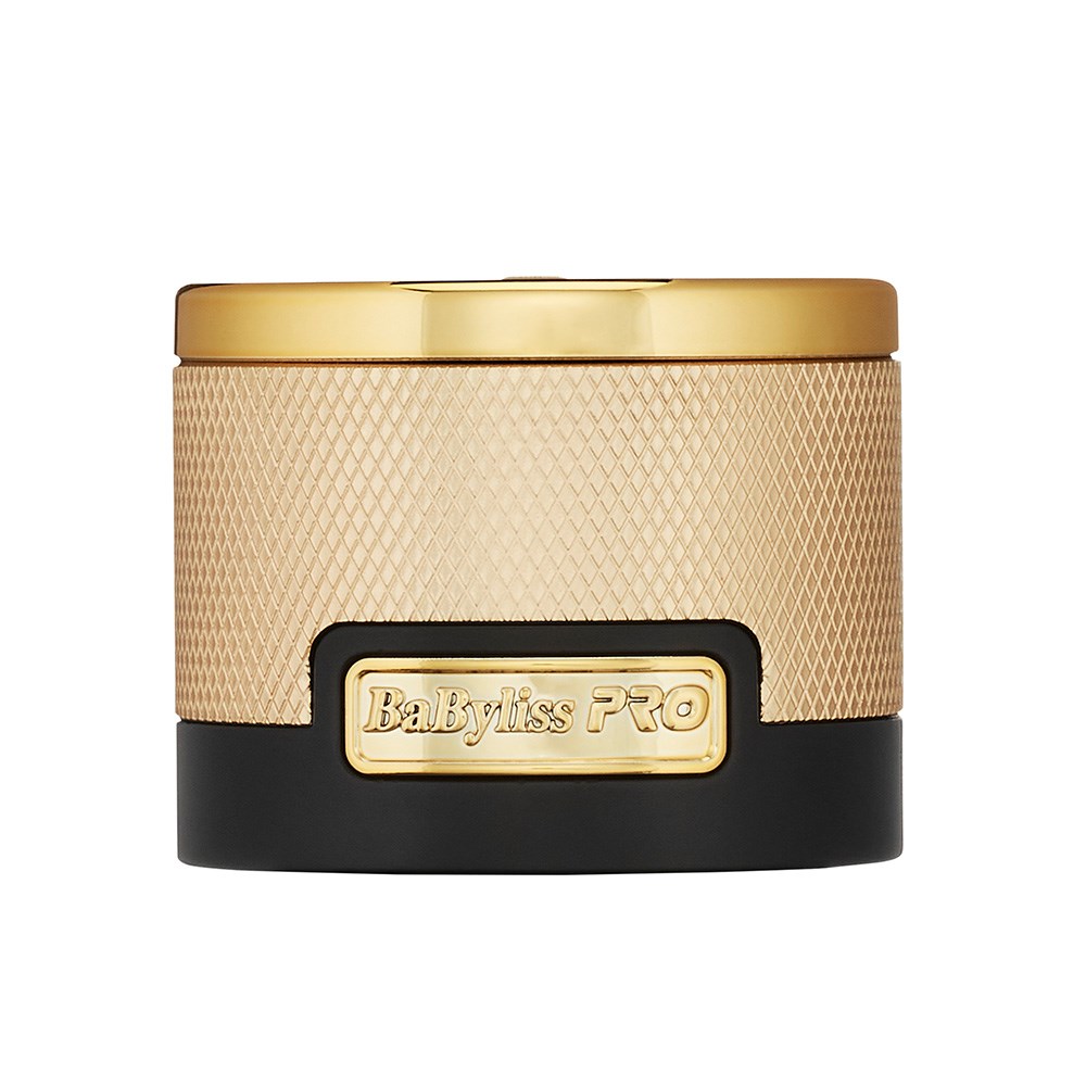 Universal battery charging stand which fits all BaBylissPRO FXONE and SnapFX lithium-ion batteries. BaBylissPRO FXONE Universal Battery Charging Stand Gold features USB-C and standard charging ports. Great as a travel charger and mini stand. Knurled metal grip and stylish BaByliss PRO design. Does not include USB-C cable or universal FXCORD.