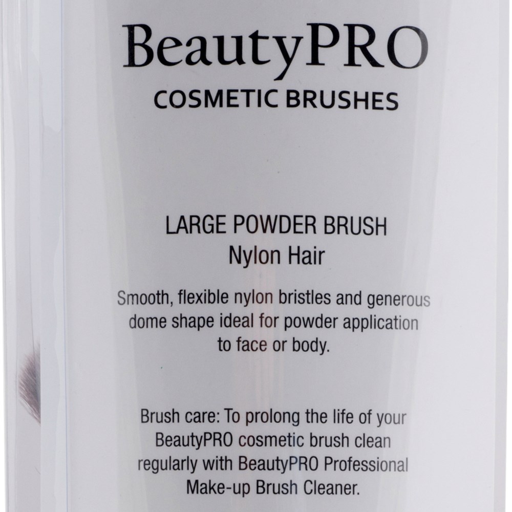 BeautyPRO Large Powder Makeup Brush blends effortlessly for a flawless finish. The sleek black handle design is classic while the bristles are soft and flexible. BeautyPRO Large Powder Makeup Brush is ideal for powder application. Prolong the life of your BeautyPRO make up brush by cleaning regularly with BeautyPRO Professional Makeup Brush Cleaner.