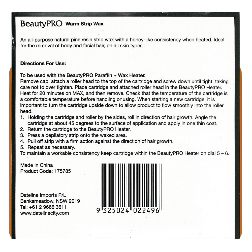 An all-purpose natural pine resin strip wax with a honey-like consistency when heated. Perfect for all skin types. Cartridge slots straight into the BeautyPRO Wax + Paraffin Heater.