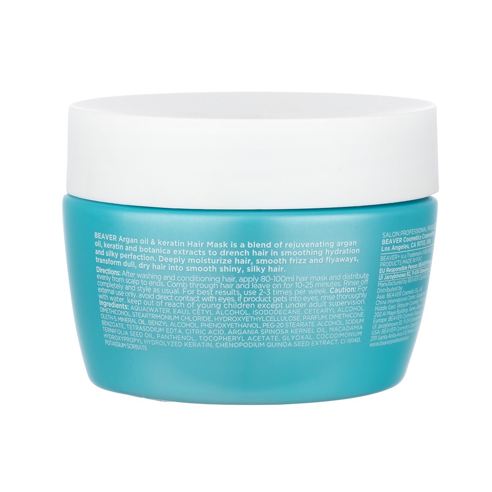 The power of nourishing, antioxidant-rich argan oil and strengthening keratin. Beaver Argan Oil and Keratin Repairing Hair Mask reaches deep into the hair shaft to plump up the hair cuticle from within. This moisturising hair treatment reveals renewed strength, vibrant shine and silky softness. The lightweight yet ultra-moisturising formula drenches hair in smoothing hydration and silky perfection. A colour-safe and colour-protective. Beaver, hardworking for hair.