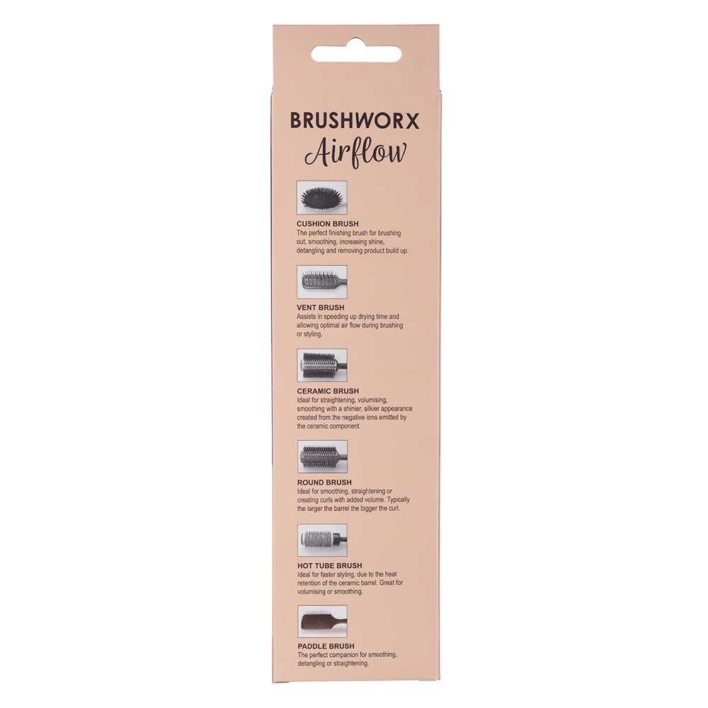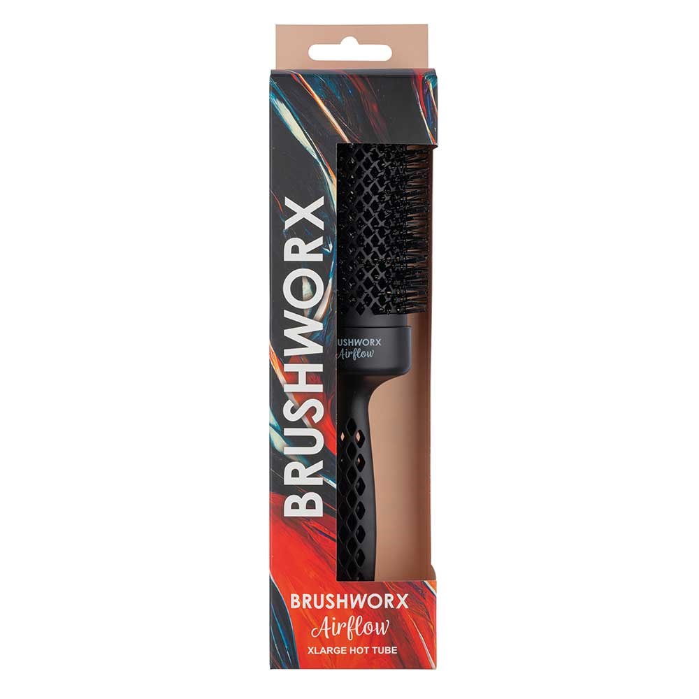 Lightweight, ergonomic and perfect for leave-in styling. Brushworx Airflow Hot Tube Hair Brush Extra Large is a blow-dry staple. All Brushworx Airflow hair brushes feature a vented effect for accelerated blow-drying time. Enjoy faster styling courtesy of the ceramic barrel’s heat retention. Ideal for all styles of blow-drying, this brush is most loved for volume, waves and soft curls. Nylon bristles grip and create the perfect amount of tension for impeccable styling. Silkier, shinier, smoother results… faster. Brushworx, the brush authority. Brushworx, the brush authority.
