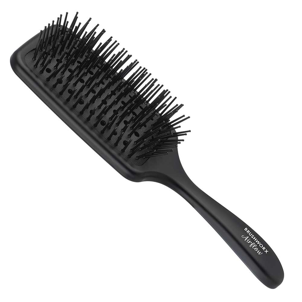 Lightweight, ergonomic and perfect for smoothing. Brushworx Airflow Paddle Hair Brush is an essential all-rounder. All Brushworx Airflow hair brushes feature a vented effect for accelerated blow-drying time. This paddle brush is most loved for smoothing, detangling and straightening with a flat brush blow-drying technique. Nylon bristles grip and create the perfect amount of tension for impeccable styling. Silkier, shinier, smoother results… faster. Brushworx, the brush authority.