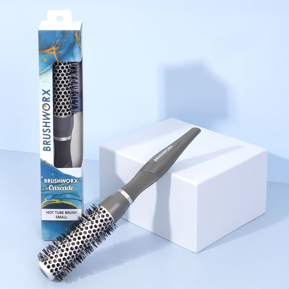 A hairstylist’s favourite brush! Brushworx Cascade Hot Tube Hair Brush Small takes the salon essential and makes it even better. More comfortable, more lightweight and more balanced. A texturised, rubberised handle improves grip and control. Nylon bristles create the perfect amount of tension for styling. Speed up your blow-drying time with the hollow, vented ceramic coated barrel, leaving hair silkier, shinier and smoother. Brushworx is proudly Australian-owned.