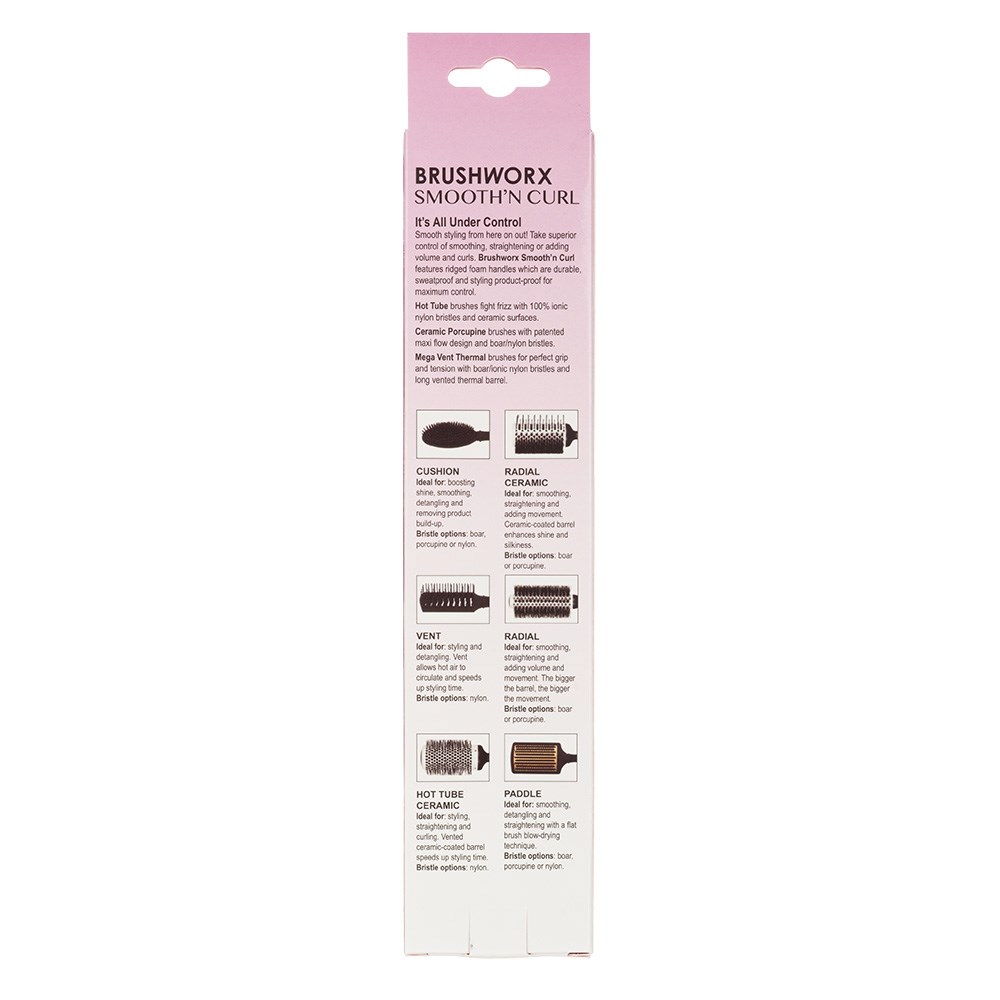 It’s smooth styling from here! Take control of smoothing, straightening or adding volume and curls. Brushworx Smooth’n Curl Mega Vent Thermal Brushes feature ridged foam handles which are durable, sweatproof and styling product-proof for maximum control. Mega Vent Thermal brushes are designed for the perfect grip and tension with boar/ionic nylon bristles and a long, vented thermal barrel. From Brushworx, the 100% Australian-owned brush authority.