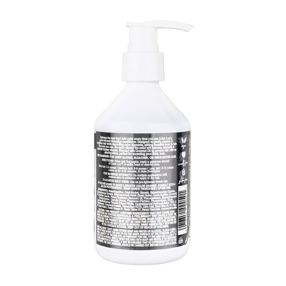 Deposit buildable colour with every wash. Color Lux Colour Cleansing Conditioner Silver cleanses, conditions and colours - good things come in threes! Designed to gently cleanse and condition hair while depositing colour pigments, adding beautiful hues to hair. The more clients use, the more vibrant the colour. Intensifies and maintains existing hair colour between salon visits. Blended with coconut oil for alluring shine.