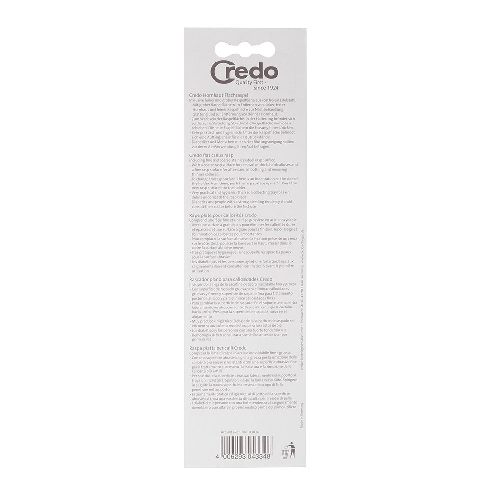- Coarse side for gentle removal of light calluses