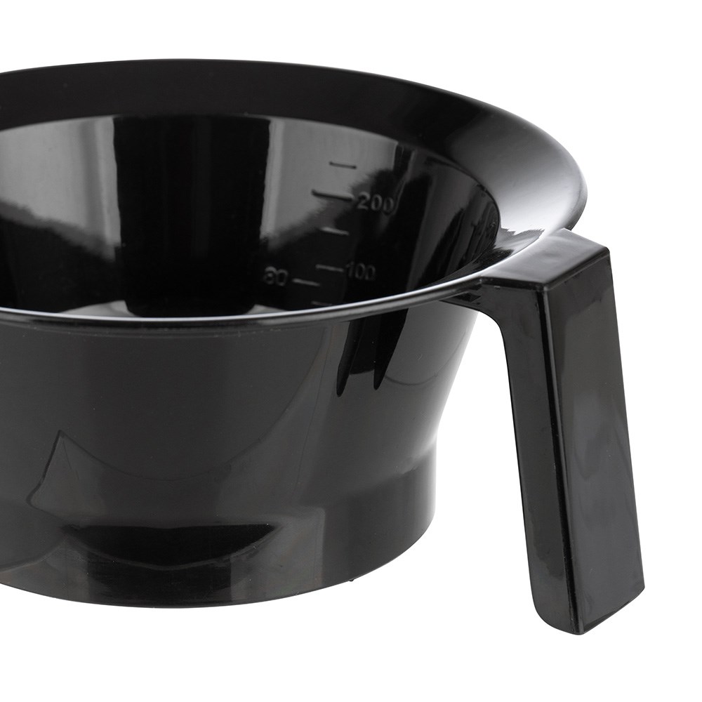 Mix it up in a Dateline Professional Black Tint Bowl with Handle! This ‘salon staple’ is the perfect size, shape and material to create the ideal mixture for an even application. Featuring a side handle for easy lifting and a rubberised grip on the base to prevent sliding. Spout edge to allow easy pouring without the mess and measurement markings on the bottom and both sides of the bowl for accurate results. Easy to clean, stack and store!