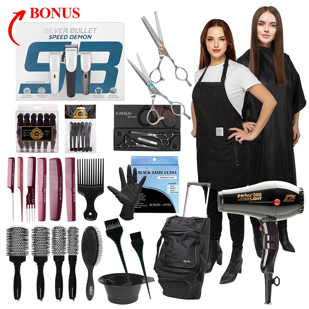 Beginning your hairdressing apprenticeship? First day in the hair salon? Dateline Professional Hairdressing Apprentice Kit Gold contains all the equipment you need, at an attractive price point! From clips, to scissors, hairstyling tools and more! Dateline Professional has got you covered for all hairdressing and salon supplies.