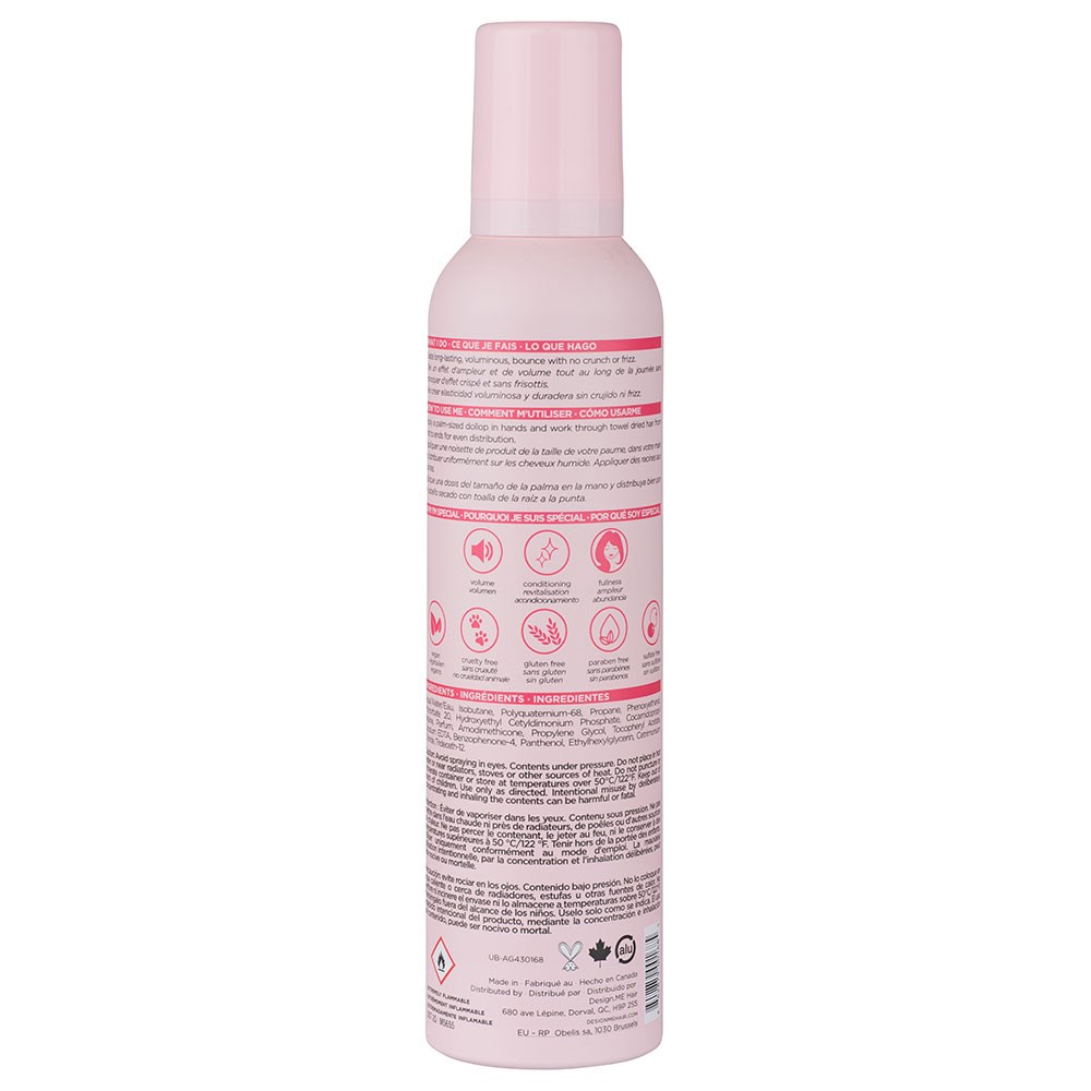 Satisfy your craving for volume. DesignME Puff.ME Volumizing Mousse creates long-lasting, voluminous bounce with no crunch. This airy mousse transforms hair, giving it noticeable volume and bounce from roots to ends. The foamy texture works easily into the hair for long-lasting hold without stickiness or crunch. Bonus: This multitasker also protects hair from heat while adding the perfect amount of shine and hydration. Winner of Allure’s 2022 Best of Beauty Award: Best Mousse for Volume.