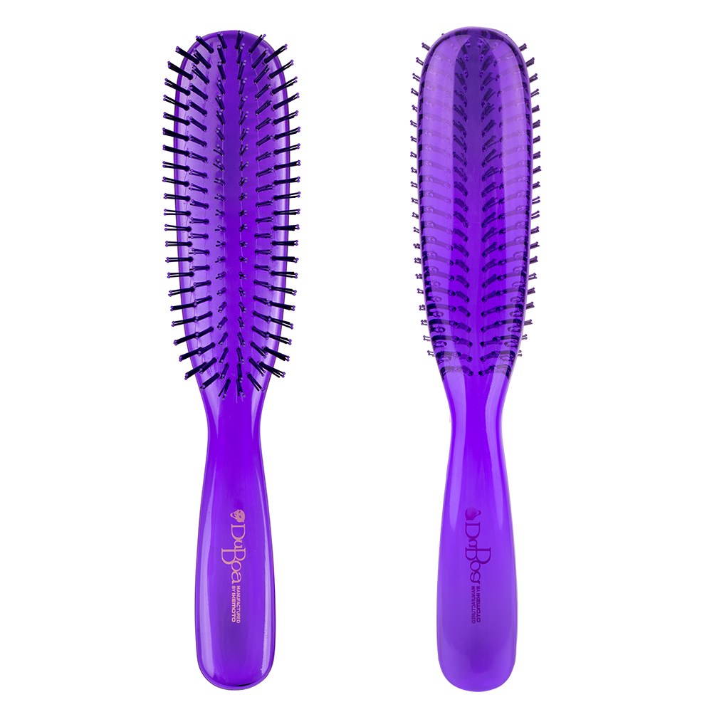 The brush which began the detangling revolution. DuBoa 80 Detangler Large Hair Brush Purple is a true one-of-a-kind. Made in Japan, this brush is crafted with extraordinarily flexible nylon bristles set together in groups of four. The result? The gentlest of detangling without unnecessary damage, breakage and split ends. This daily brush distributes hair’s own oils for a gorgeous sheen. Great for all hair types, even the thickest of manes. Everyone should own a DuBoa.