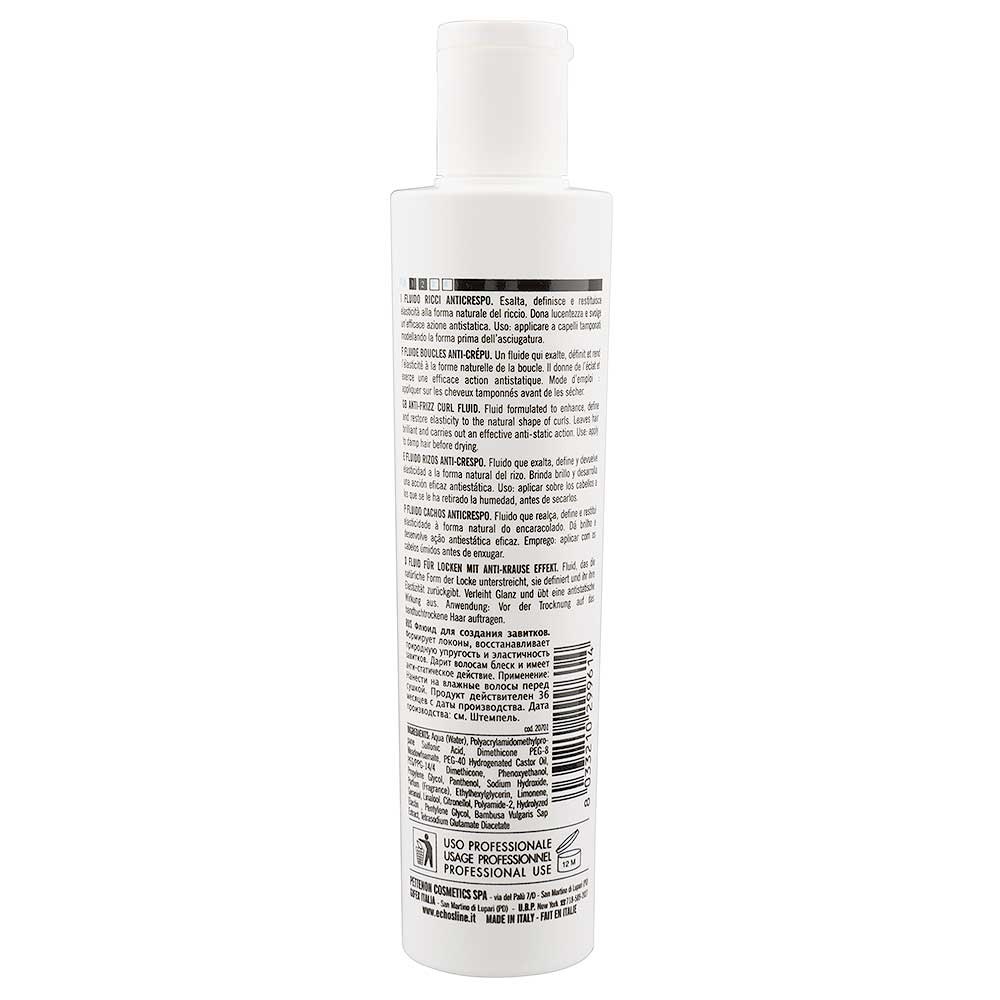 Formulated to enhance, define and restore elasticity to the natural shape of curls. Echos Anti-Frizz Curl Fluid is an elegant fluid which leaves hair frizz-free and brilliantly shiny. With a hold factor of 2 out of 4, this clear fluid provides light hold for curls. This innovative formula is conceived and manufactured in Italy with the finest ingredients.