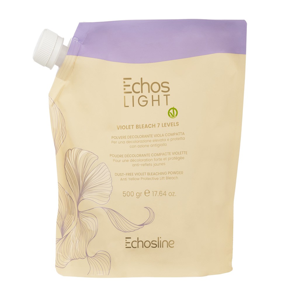 Hairdressing Bleach delivered differently. Unlike other professional hair bleach on the market, Echos Light Dust-Free Bleach Violet is housed in pouch packaging for easy storage and less plastic footprint. Made in Italy by Pettenon, this 100% vegan bleach is ideal for highlights, full bleaches and balayage. Anti- yellow, protective lift violet bleach. Lightens hair by up to 7 levels.