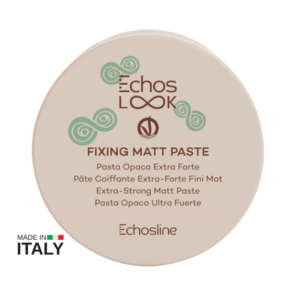 Infinite possibilities. Echos Look was created to enable endless ways to express our individuality. Echos Look Fixing Matte Paste is high-performance, forward-looking and 100% vegan. This extra-strong matte hair paste delivers a firm, lasting hold. Add definition, texture and body while enjoying a matte finish. Bamboo extract strengthens, hydrates and soothes strands.