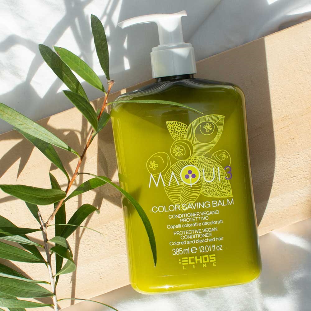 The vegan way. Echos Maqui 3 Colour Saving Balm Conditioner is uniquely powered by ancient superfood, the maqui berry. Rich in antioxidants and brimming with nourishment, the maqui berry helps condition and hydrate. This 100% vegan protective conditioner features special technology to protect, seal and add shine to coloured and bleached hair. Echos cares about hair and the world.