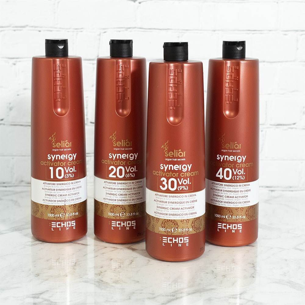 For maximum results, Echos Synergy Color Permanent Hair Colours must be mixed with Echos Synergy Color Hair Activators. The special composition boosts grey coverage, restructures and enhances glossiness. Echos Synergy Color Hair Activators can also be mixed with other brands of permanent hair colour and bleach to improve strength, stability and adherence for better lift.