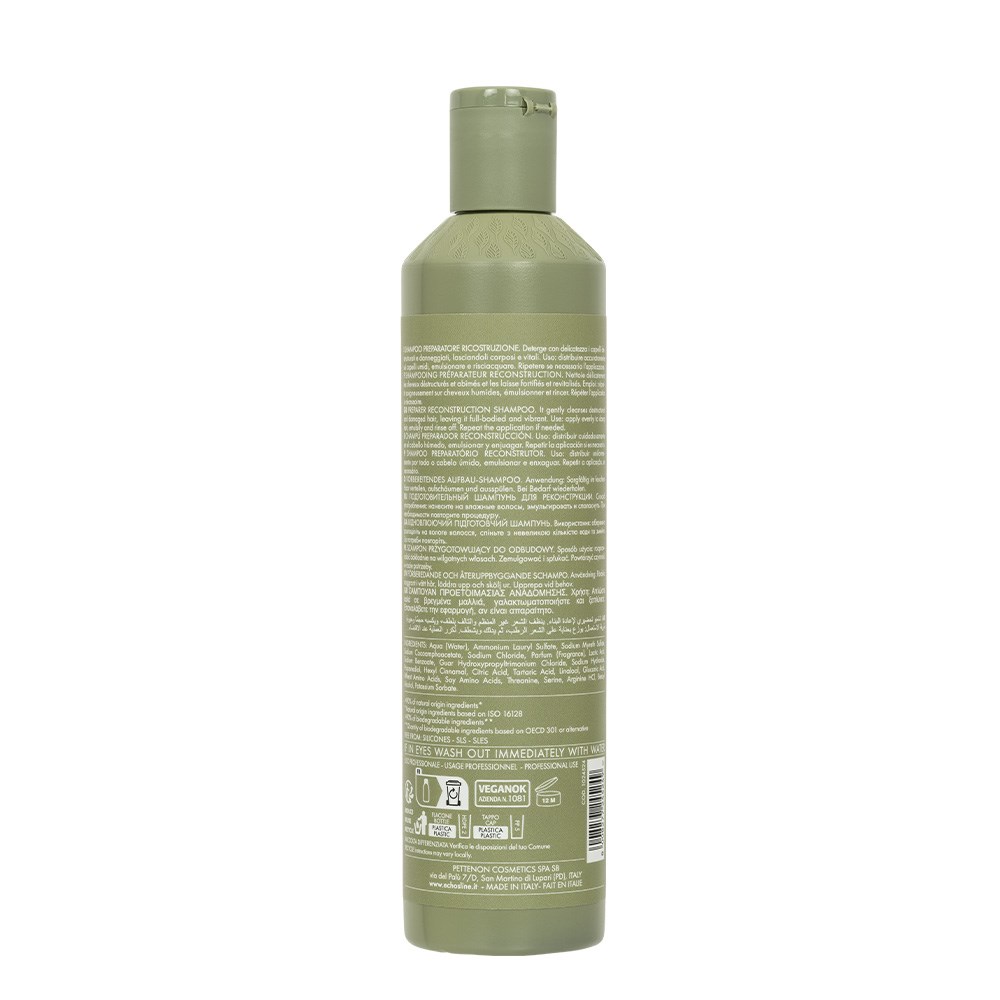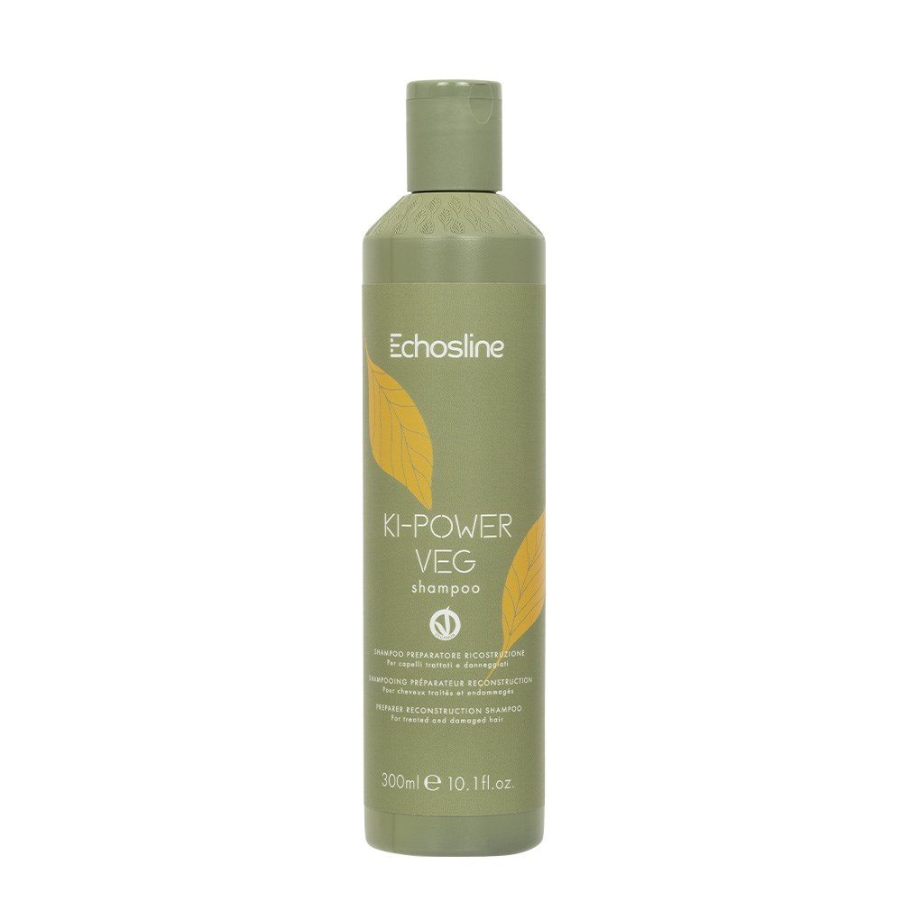 Colouring, lightening, blow-drying and styling all take a toll on hair. Renew hair’s structure with Echosline Ki-Power Veg Complex, a potent blend of amino acids which repairs and regenerates. Echosline Ki-Power Veg Shampoo gently cleanses damaged hair, leaving it full-bodied, shiny and vibrant. Powered by Ki-Power Veg Complex with 18 amino acids, vegetable keratin and pea, soy and wheat extracts, this 100% vegan shampoo contains >90% ingredients of natural origin* and >90% biodegradable ingredients**. Free from silicones, Sodium Lauryl Sulphate (SLS) and Sodium Lauryl Ether Sulphate (SLES).