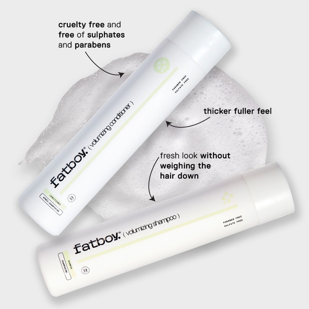 Fatboy Volumising Conditioner is a carefully crafted blend of select ingredients. Wheat protein strengthens the hair shaft, preventing breakage and adding shine. In addition, sweet almond oil repairs damage and locks in moisture. Hair shines with every use. Paraben-free, sulphate-free and cruelty-free. Get ready to top the charts with stylist-grounded, performance-driven Fatboy.