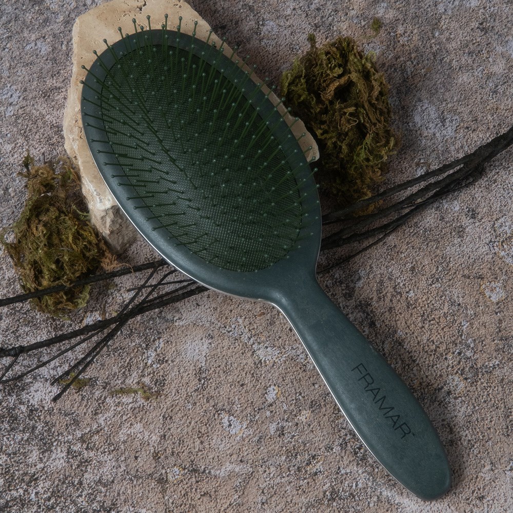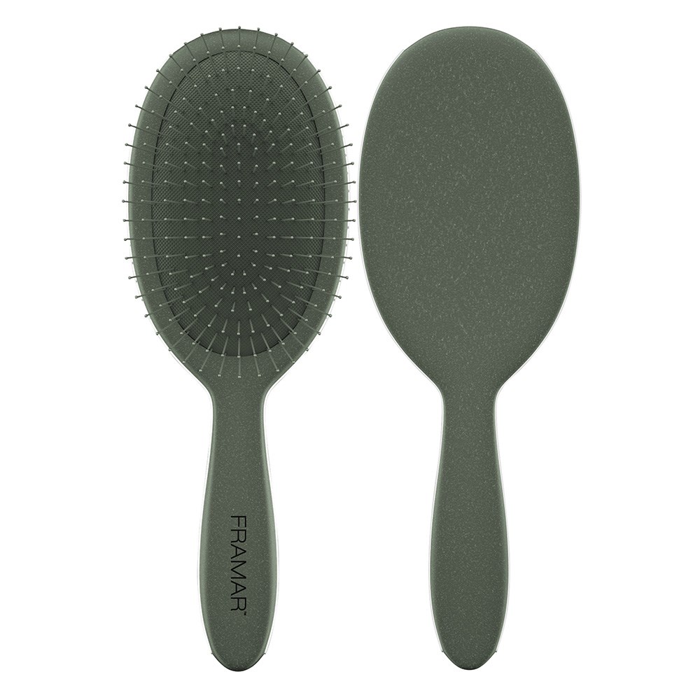 Green with envy! With peaceful, earthy tones, Framar Sage collection suits your neutral aesthetic beautifully. Framar Detangle Hair Brush Sage Evergreen is your new favourite. Effortlessly detangle wet or dry hair with ease. Ideal for all hair types, including wigs and hair extensions. Flexible bristles deliver pain-free brushing. Not only a detangler, this brush is also great at brushing colour or toner through hair for even application or assist in styling, such as brushing out curls.