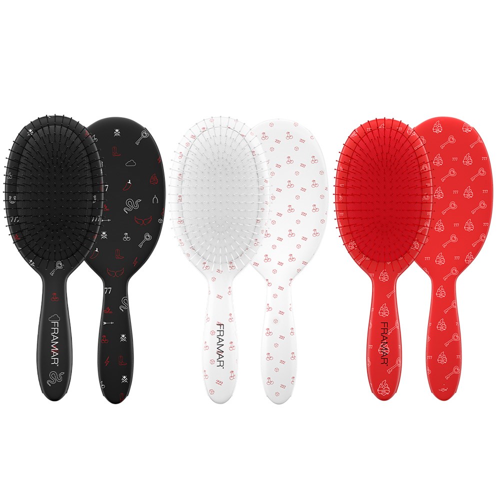 - 3 x Framar Detangle Hair Brush Get Lucky Red