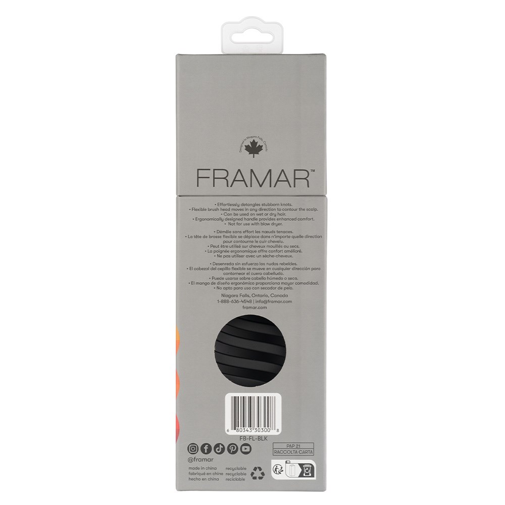 Designed for movement and airflow, Framar Flex Hair Brush Black is heat resistant and perfect for blow-dries. Moving with your scalp, this brush glides through the hair with ease, bending when needed while speeding up drying time. Effortlessly detangles stubborn knots on wet or dry hair. Ideal for all hair types, including wigs and extensions.