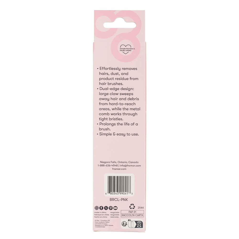 A chic little lifesaver which keeps hairbrushes fresh, clean and ready to style. Framar Hair Brush Cleaner Pink is designed for efficiency. This tool removes trapped hair, lint and buildup in seconds so your brushes stay as flawless as your blow-dries.