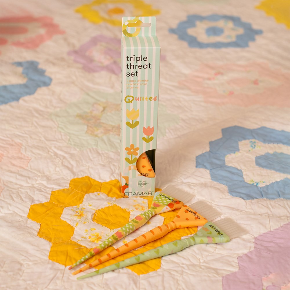 Nice and precise! Framar Triple Threat Tint Brush Set Quilted is a set of brushes which will bring out your true talent. These brushes tackle detail work with ease. Perfect for root tapping, precise blends and babylights. Framar’s famous AccuSoft bristles are tapered to pick up and distribute colour to hair evenly, quickly and precisely. Charming, vintage-inspired patterns.