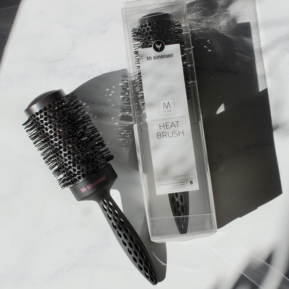 Danish design introduces the soulmate of hair dryers. HH Simonsen Heat Brush Medium is designed to let air pass through the brush head and thus add volume to the hair. When heated over 60°C, the black barrel turns pink to indicate high temperature. The ceramic barrel retains heat, while zigzag bristles ensure better grip when brushing. Faster blow-drying, better styling.