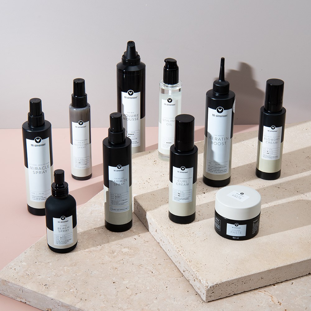 Softer, shinier, more gorgeous. Treat hair to something special with unique HH Simonsen Styling Oil. With carefully chosen ingredients such as argan and jojoba oils, this styling oil has a nourishing, protecting and softening effect on hair. A luxurious gift for hair which imparts immediate shine, less frizz and makes hair easier to comb. Protects hair during heat styling. Created in Denmark. Built on experience. Made for professionals.