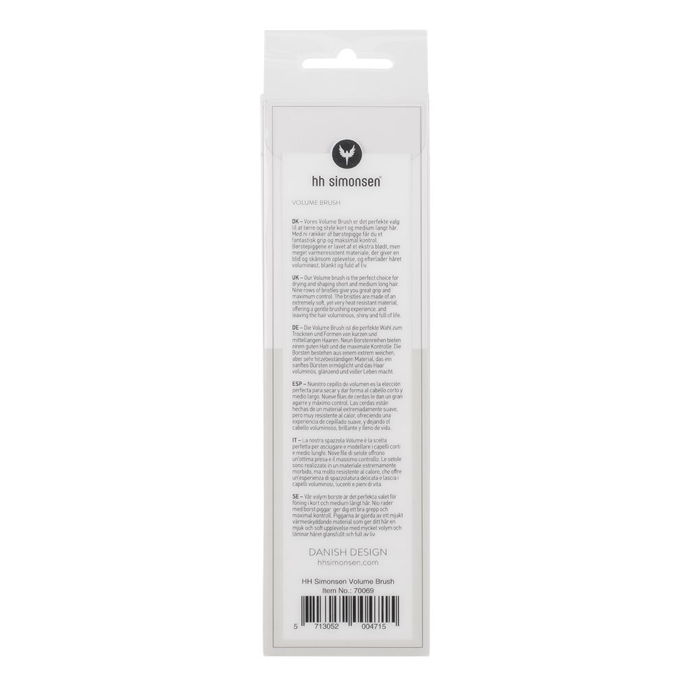A brush is not just a brush. HH Simonsen can prove it. HH Simonsen Volume Brush is the perfect choice for drying and shaping short to medium hair. Nine rows of bristles give you great grip and maximum control. The bristles are made of an extremely soft yet heat resistant material, offering a gentle brushing experience. Hair is left voluminous and shiny. Danish design.