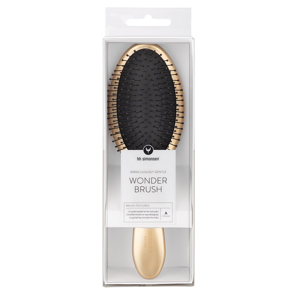 A brush is not just a brush. HH Simonsen can prove it. Danish design at its best, HH Simonsen introduces the miraculously gentle Wonder Brush in Golden Delight. By hairdressers for hairdressers, the Wonder Brush features Smartflex bristles which are extremely flexible and protect against damage. 3D convex shaped pad design optimises bristle-to-hair contact. Large ball tips stimulate the scalp. Simply, easier detangling with less hair breakage.