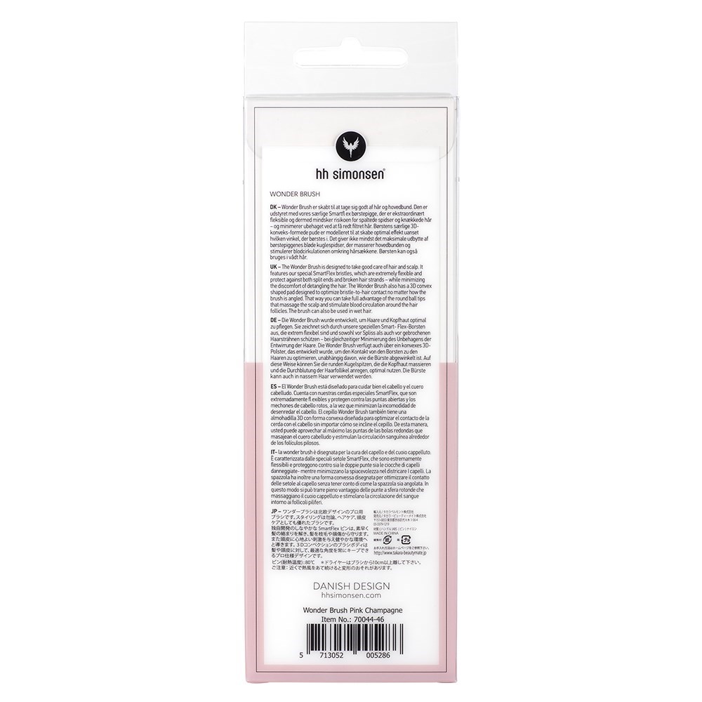 A brush is not just a brush. HH Simonsen can prove it. Danish design at its best, HH Simonsen introduces the miraculously gentle Wonder Brush in Pink Champagne. By hairdressers for hairdressers, the Wonder Brush features Smartflex bristles which are extremely flexible and protect against damage. 3D convex shaped pad design optimises bristle-to-hair contact. Large ball tips stimulate the scalp. Simply, easier detangling with less hair breakage.