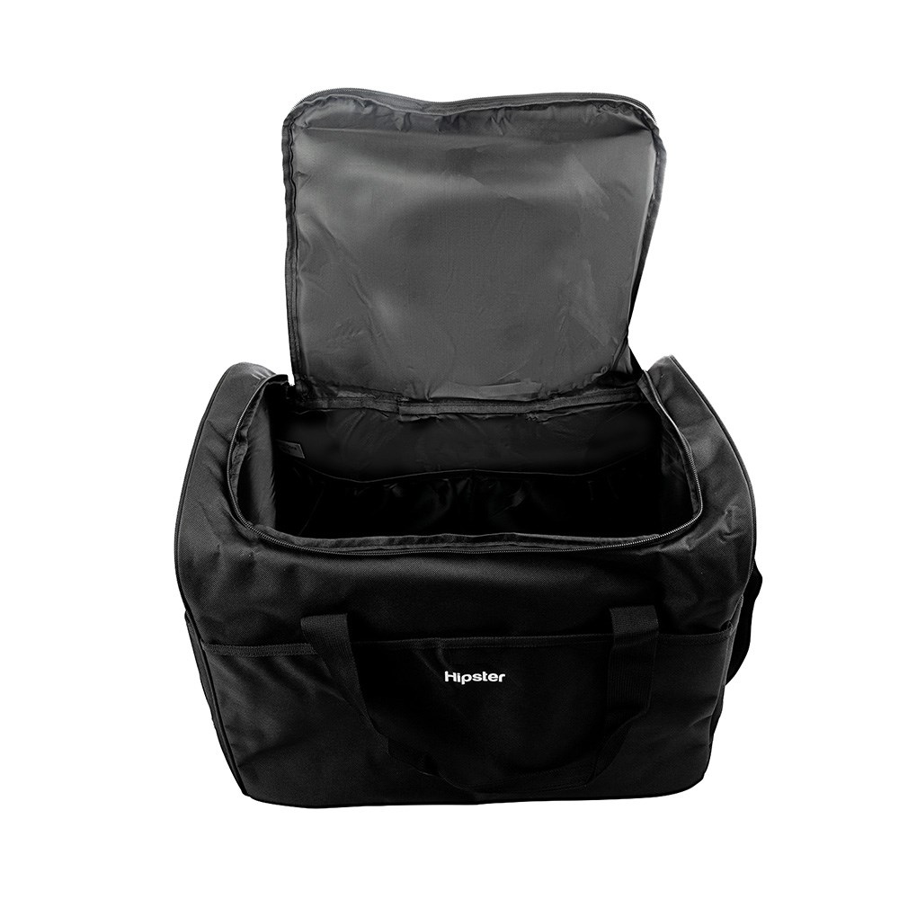 On the move? Hipster Salon On the Move Equipment Bag is your new favourite companion. This lightweight, padded equipment bag with detachable, extendable shoulder strap is the perfect bag for on-the-go hairstyling. Sturdy zippers will stand the test of time. Plastic feet for durability. Moveable padding on shoulder strap for ultimate comfort. Magic-grip closing pocket on front of bag. Large zip pocket on back of bag. Large, deep main compartment with 2 x elastic pockets inside. Bag measures 44cm (L) x 31cm (W) x 31.5cm (H).