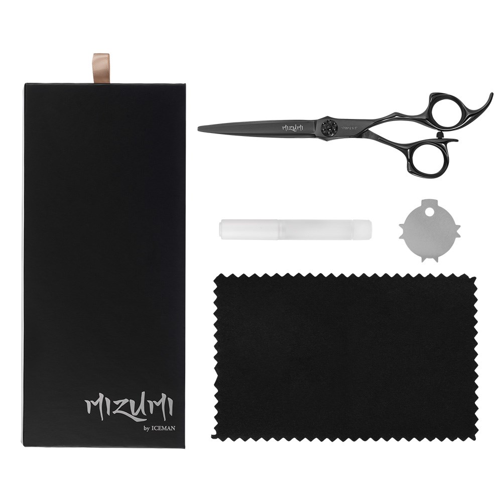 When precision is everything, compromise isn’t an option. Mizumi by Iceman Katani 6.5” Hairdressing Scissors Black are a celebration of Japanese-inspired craftsmanship, designed for hair professionals who demand the best. Meticulously forged from VG10 steel, enriched with cobalt and high carbon content, these scissors deliver unparalleled sharpness, exceptional durability and superior corrosion resistance. 6.5” is perfectly suited to scissors over comb cutting techniques. Designed to meet the needs of senior hairstylists and barbers.