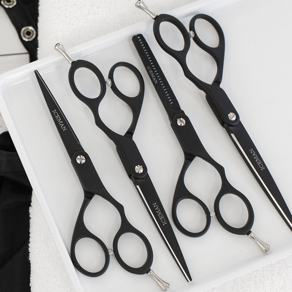 Luxurious yet highly affordable. Iceman Nano 5.5” Hairdressing Scissors Matte Black feature precise micro-serrated and hand-honed stainless steel blades for truly exceptional cutting performance. A great choice for precision work, these scissors have superb ergonomics with an offset handle and removable finger rest. Ideal scissors for apprentices or a backup pair for your hairdressing kit.