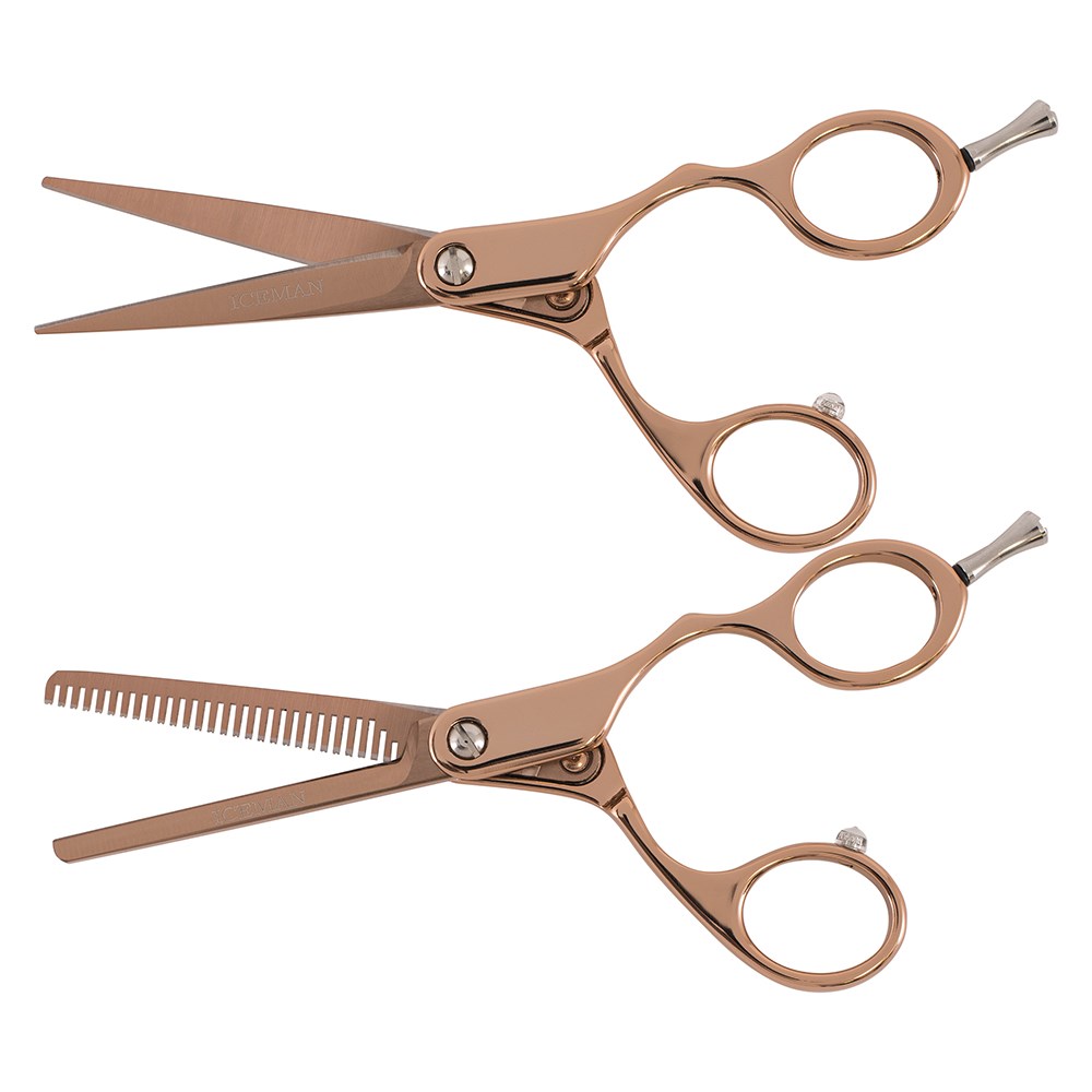 Iceman Rose Gold 5.5” Hairdressing Scissors are on-trend in glamourous rose gold. Luxurious yet highly affordable with precise micro-serrated blades and removable finger rests. Crafted with a micro-serrated edge for control as it helps to hold client’s hair in place. Great for slow detail cutting or use on dry hair. Only from Iceman…Cold, hard steel.