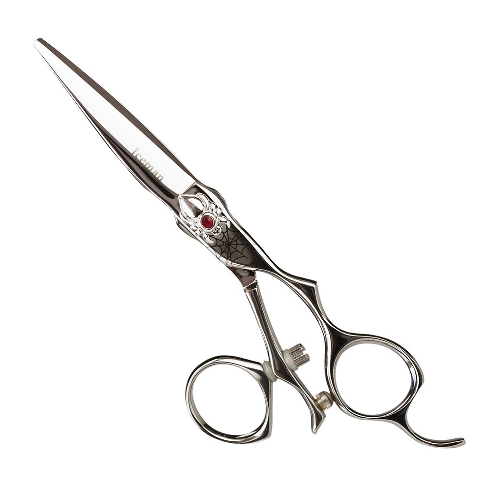 Featuring a ‘redback’ jewelled spider and black spider web design, Iceman Suntachi Black Widow Red Gem Swivel Thumb Hairdressing Scissors embody style and function. Iceman features a 360° rotating thumb which minimises hand and wrist strain by allowing your hand and shoulder to remain in a relaxed, natural position when cutting. Hand-honed, utilising high-density Japanese steel for a sharp, long-lasting edge. The 5.5” scissors are perfect for cutting, sliding, slicing, chipping and notching. Ideal for any length of hair, wet or dry. Exceptional scissors with exceptional good looks!