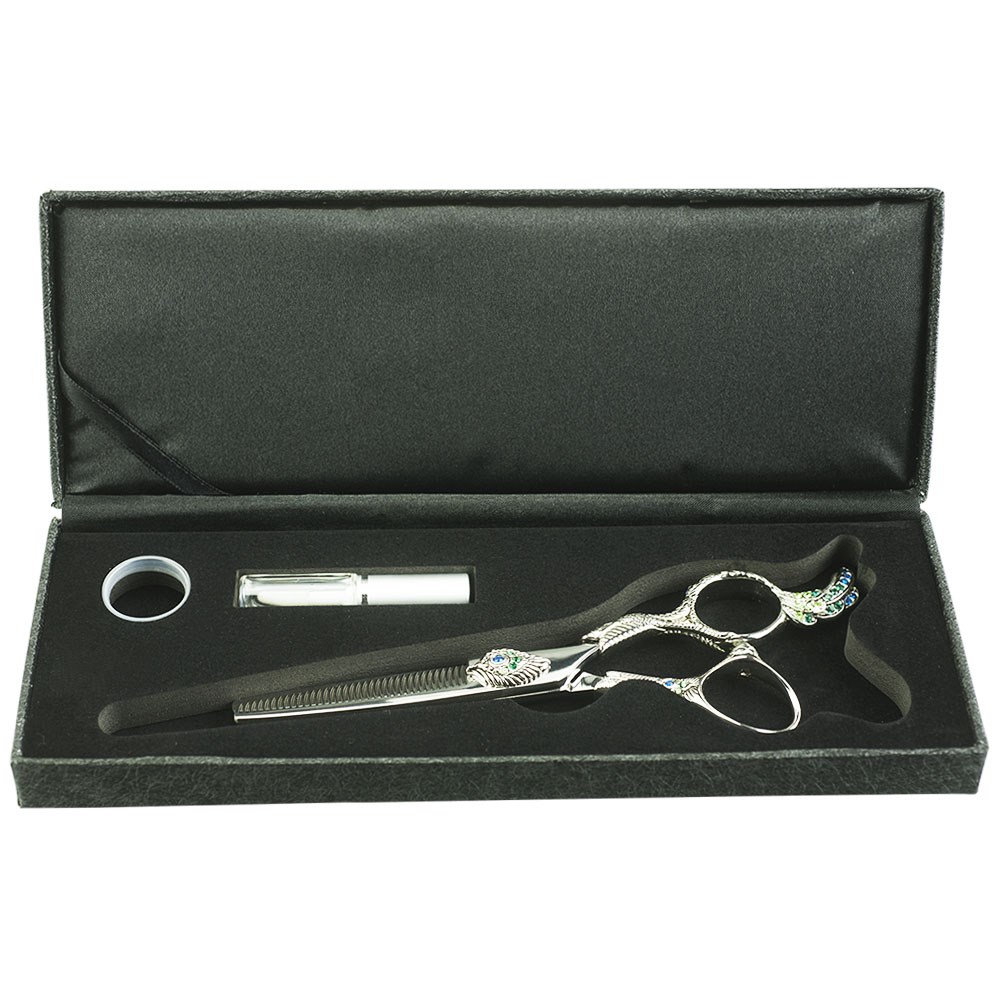 Made from the highest quality Japanese hitachi steel, Iceman Suntachi Peacock 6” Thinning Hairdressing Scissors are impeccably stylish. The Iceman razor sharp, long-lasting edges follow a superior level of hand-crafting, while the peacock design will make you proud. Suntachi scissors are manufactured with the blade and handle in one piece and sharpened to a 35-45 degree angle.
