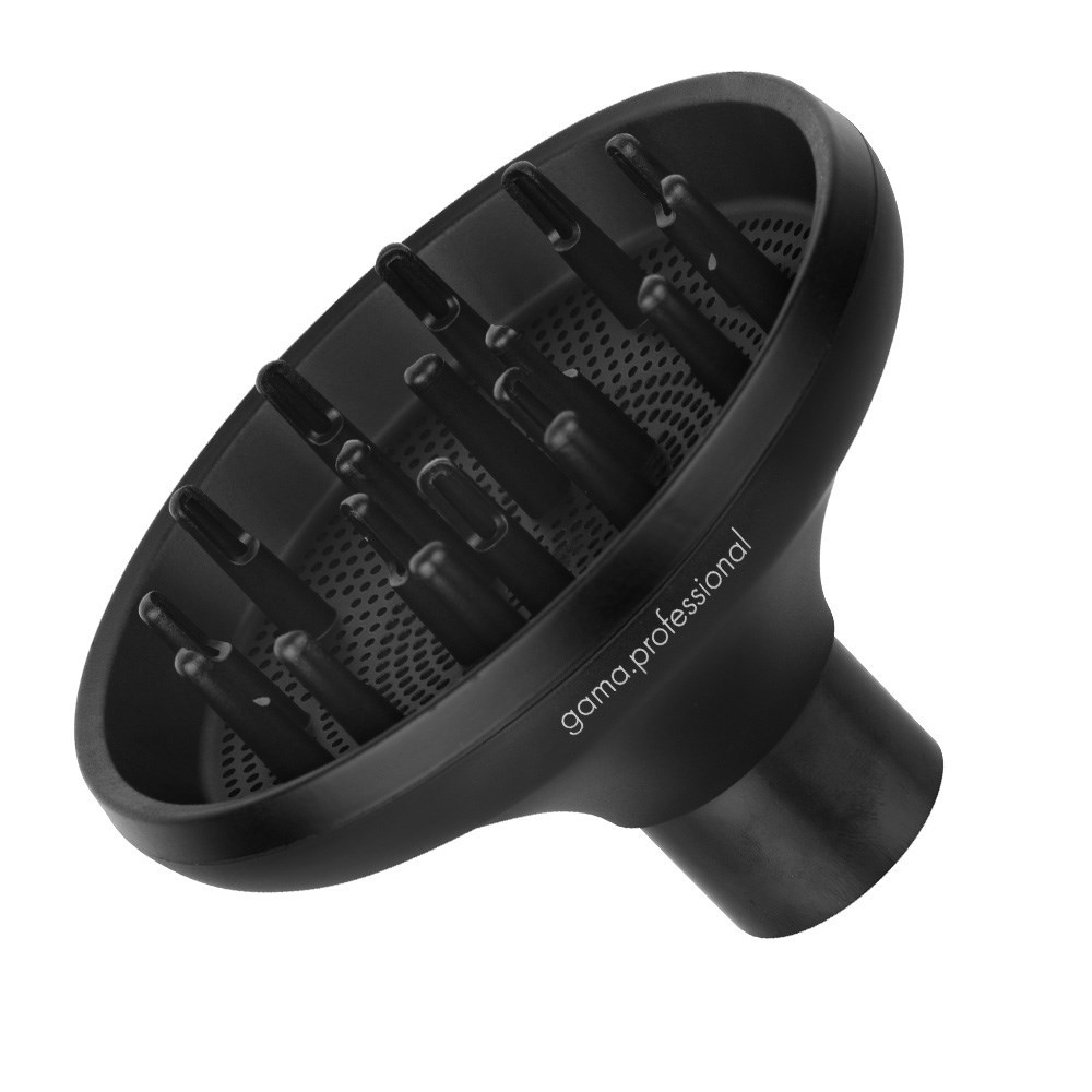 The Gama Professional iQ Perfetto Diffuser Black snap locks onto the iQ Perfetto Hair Dryer Black. Designed to soften and diffuse airflow to encourage curl and wave formation without the frizz. Ideal for curly, wavy or permed hair textures.