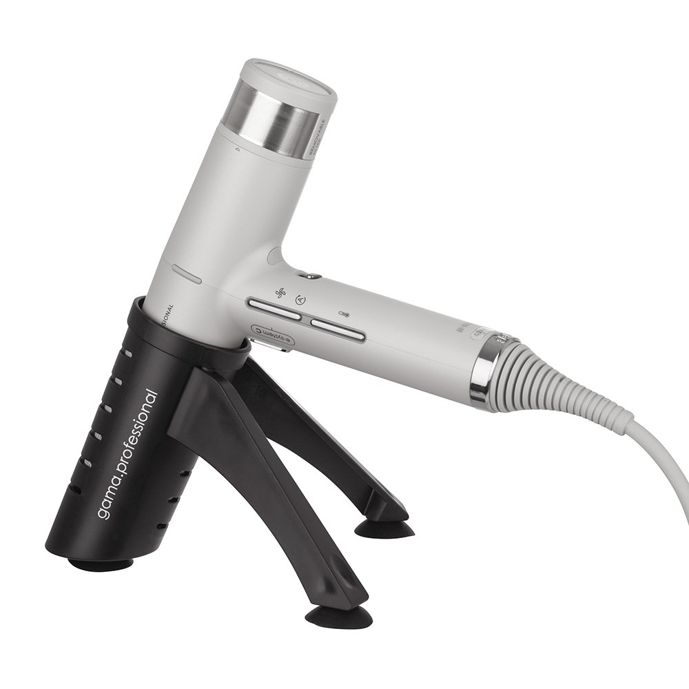 Free up bench space and stop the tangle of cords. iQ Perfetto Hair Tool Holder by Gama Professional is a sleek design which fits any aesthetic. This hair accessory is designed to fit the iQ Perfetto Hair Dryer perfectly, as well as hair straighteners and curling irons, this holder allows for ease of styling and prevents marking of surfaces from a hot tool. Suction feet on the holder make it easy to place wherever you want. Move around and reposition as needed on various surfaces, including mirrors, tiles and more. The size of the holder enables use not only with the iQ Perfetto Hair Dryer, but also other heated styling tools.