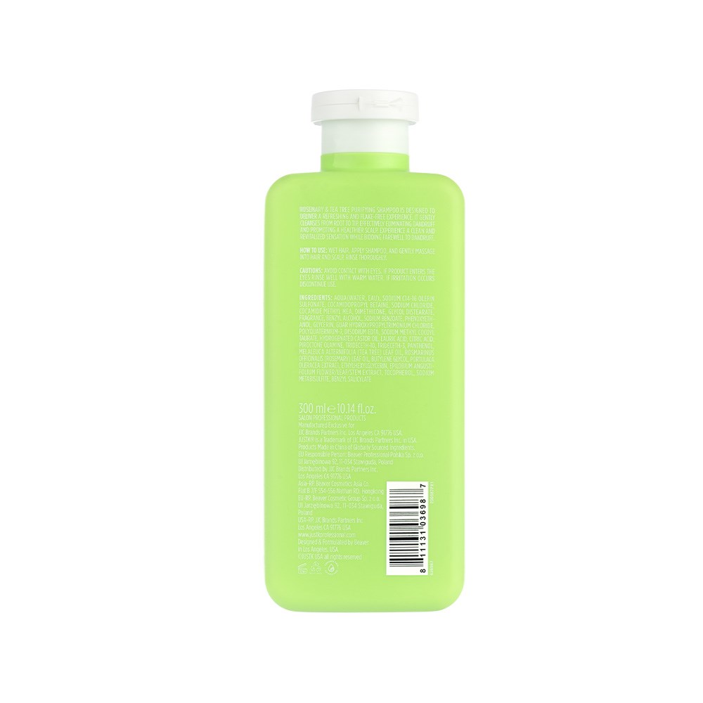 JustK is just results. From whoa to wow, one wash at a time. Salon-proven formulas which solve all the problems of the hair rainbow. Choose JustK Purifying Shampoo for a refreshing, flake-free experience. Infused with rosemary and tea tree, this sulphate-free, paraben-free shampoo helps to eliminate dandruff and soothe the scalp. Gently cleanse from root to tip while bidding farewell to flakes. Beautifully flake-free becomes affordable!