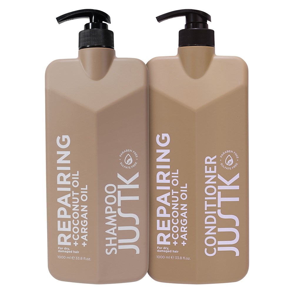 JustK is just results. From whoa to wow, one wash at a time. Salon-proven formulas which solve all the problems of the hair rainbow. Choose JustK Repairing Conditioner 1L for deep hydration and repair. Infused with coconut oil, argan oil and hyaluronic acid, this sulphate-free, paraben-free conditioner strengthens and nourishes dry, damaged hair. Detangle from root to tip while hydrating parched strands. Beautiful strength becomes affordable!