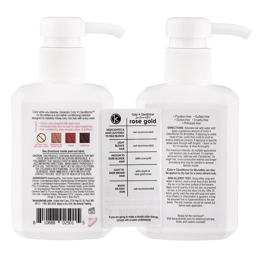 There’s no blah in this brunette. Introducing a special Keracolor collection just for brunettes. Keracolor Color + Clenditioner Colour Shampoo for Brunettes in Rose Gold is perfect for brunettes looking for subtle, temporary change without commitment or needing to lighten hair. Colour while you cleanse with this non-lather, keratin-infused conditioning cleanser designed to instantly infuse semi-permanent colour into hair with every wash. Kind ingredients include coconut oil, shea butter, rose hip oil, jojoba oil and almond oil. The kindest of colour for hair and the environment.