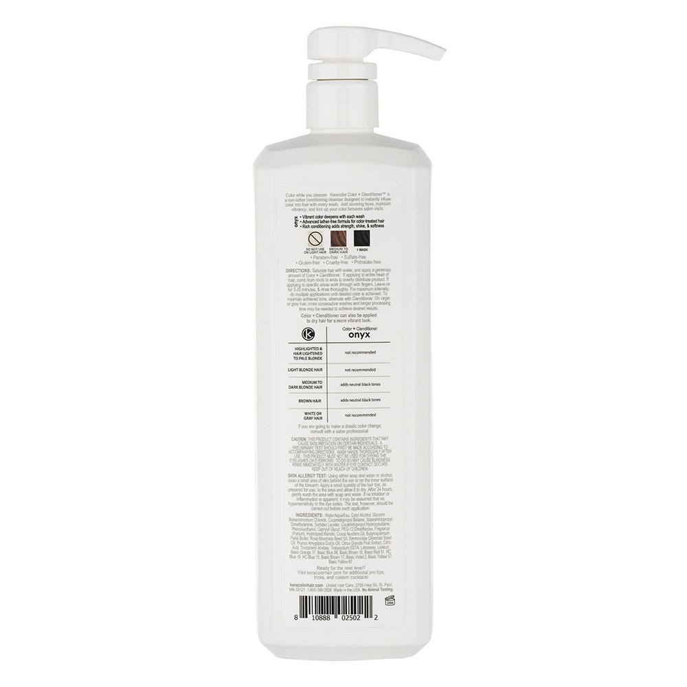 Meet Onyx. A deep, cool-based black tone, Keracolor Color + Clenditioner Conditioning Shampoo Onyx 1L is perfect for adding semi-permanent black tones back into faded hair. Colour while you cleanse with this non-lather conditioning cleanser designed to instantly infuse semi-permanent direct dye pigments into hair with every wash. Add stunning hues, maintain vibrancy and kick up colour between salon visits. Large 1 litre size.