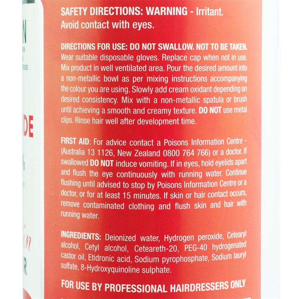 Keratin Colour Crème Peroxide is formulated so there is no chemical odour. When used in conjunction with the Keratin Colour range, this high performance peroxide will ensure the correct consistency for precise application. Built-in conditioners and buffers provide optimum results leaving the hair in the best possible condition.