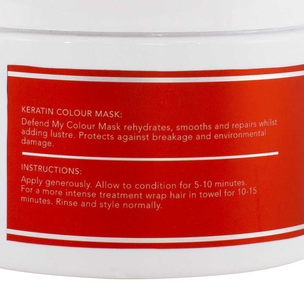 Help clients get maximum colour defence with the power of keratin. Keratin Colour Defend My Colour Hair Mask is formulated with nourishing Argan Oil, Coconut Oil, Marula Oil and Quinoa Seed Extract to smooth, repair and add brilliant shine. Protects against further damage and leave hair feeling more luscious than ever. Sulphate and paraben-free.