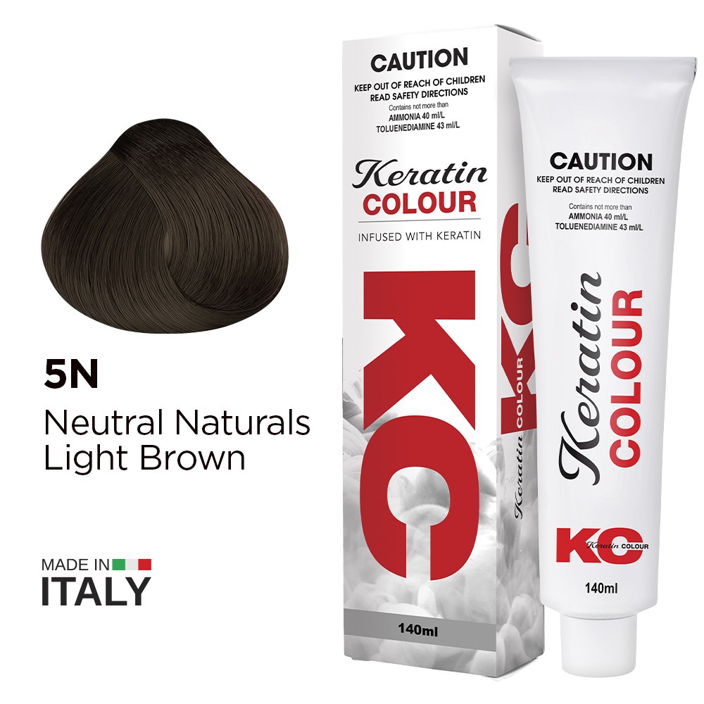 Keratin Colour is transformation. With new formula and new packaging, Keratin Colour Permanent Colour 5N Neutral Naturals Light Brown delivers vivid, long-lasting hair colour while renewing hair from within. Enriched with advanced Keraveg, softening Tsubaki oil, refreshing lotus flower, glycolic extract and luminous diamond powder for sensationally fade-resistant colour. Full coverage, green-based colour range which neutralises warmth for balanced, natural-looking results. Exceptional value with supersized 140g tube and new whipped cream consistency which requires less product for complete hair colour service. Now 100% vegan and proudly Australian-owned.
