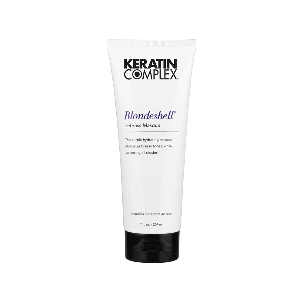 Eliminate brassy tones and rebuild resilience with this hair treatment. Keratin Complex Blondeshell Debrass Hair Masque is a purple hydrating masque which eliminates brassy tones while enhancing all shades and types of hair, including dry, damaged and keratin-treated. Keratin Complex’s signature keratin rebuilds essential proteins within the hair for improved elasticity. The purple formulation neutralises brassiness for instant renewal. An exclusive blend of antioxidants, oils and extracts strengthens and repairs weak and fragile hair. Shea butter nourishes and helps retain moisture within hair.