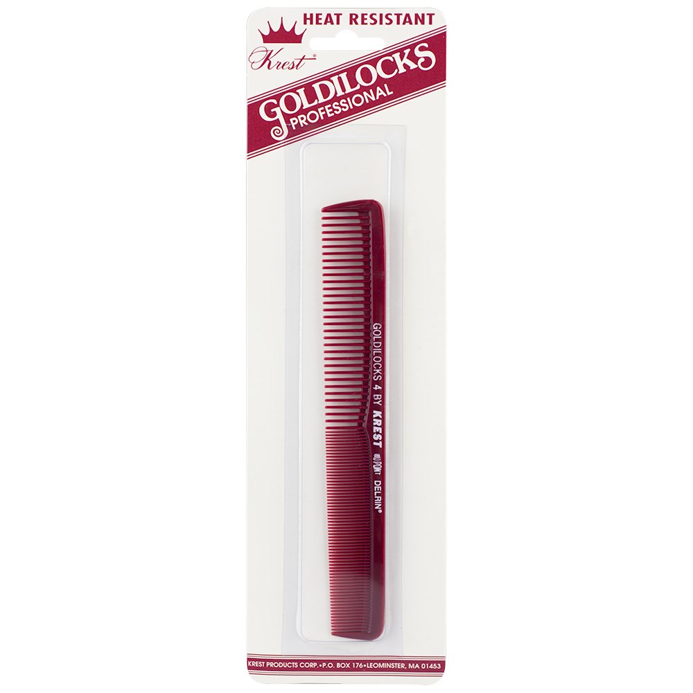 Krest Goldilocks Cutting Comb is made from DuPont Delrin for added strength, low friction and heat resistance. Features wide teeth for low tension combing on thick or curly hair, and fine teeth for precision cutting with tension and control.